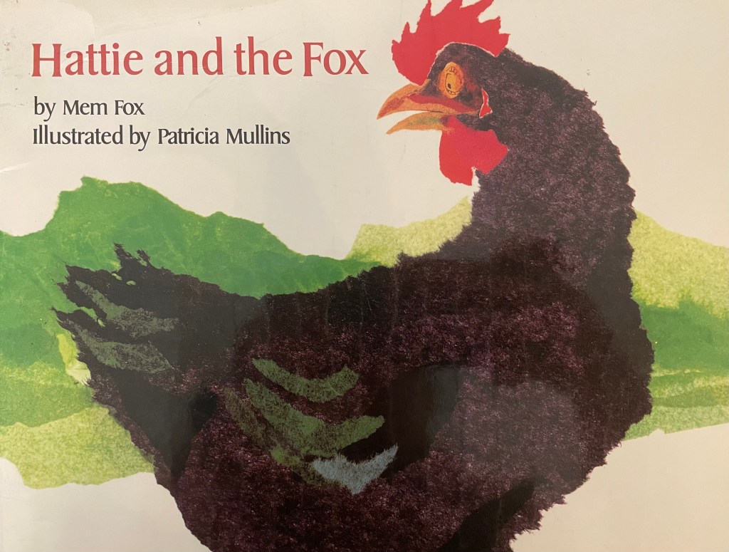 I like this story because Hattie sticks to her observations even though the other animals laugh at her. Even though she keeps listing off the face parts she sees in the bushes, no one believes her. I like the way Mem Fox lets the fox face reveal itself one face piece at a time. There’s also a really fun repetition of the way the animals brush Hattie aside. This is another good book to practice prediction.